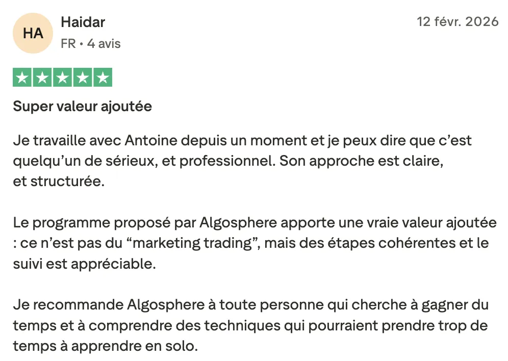 ALGOSPHERE n’est ni Conseiller en Investissements Financiers (CIF), ni Prestataire de Services d’Investissement (PSI), ni société de gestion, ni intermédiaire financier soumis à agrément de l’Autorité des Marchés Financiers (AMF).