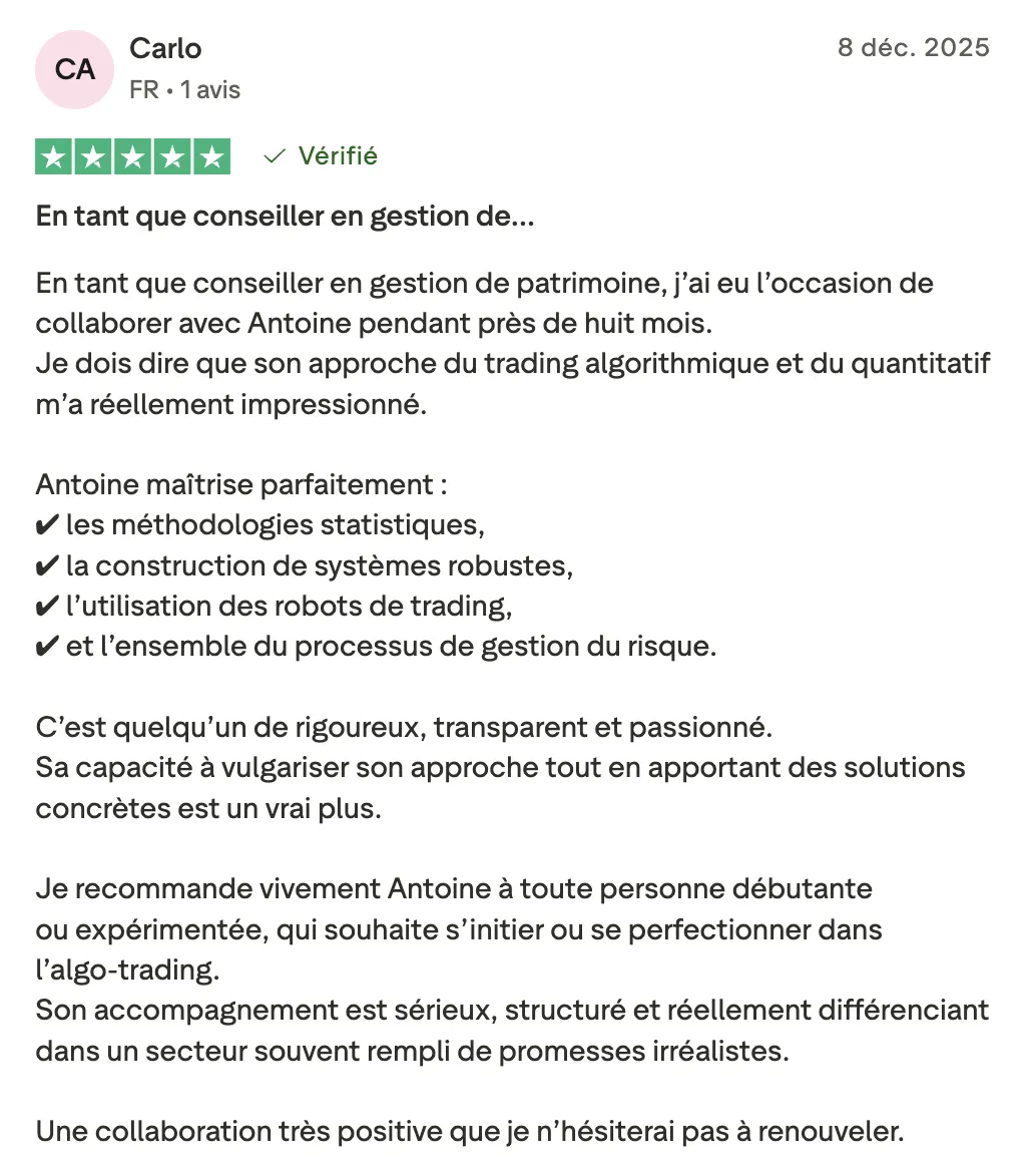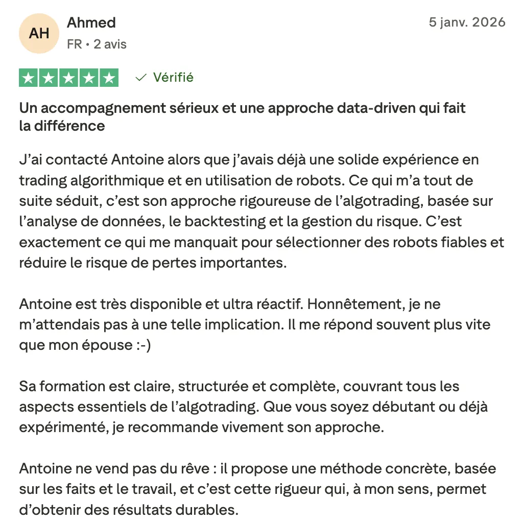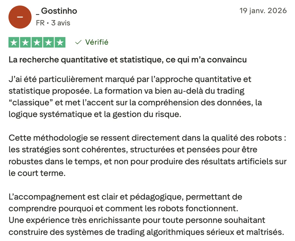 Ils y partagent leur parcours, leur progression dans l’apprentissage du trading algorithmique et leur utilisation des outils proposés.